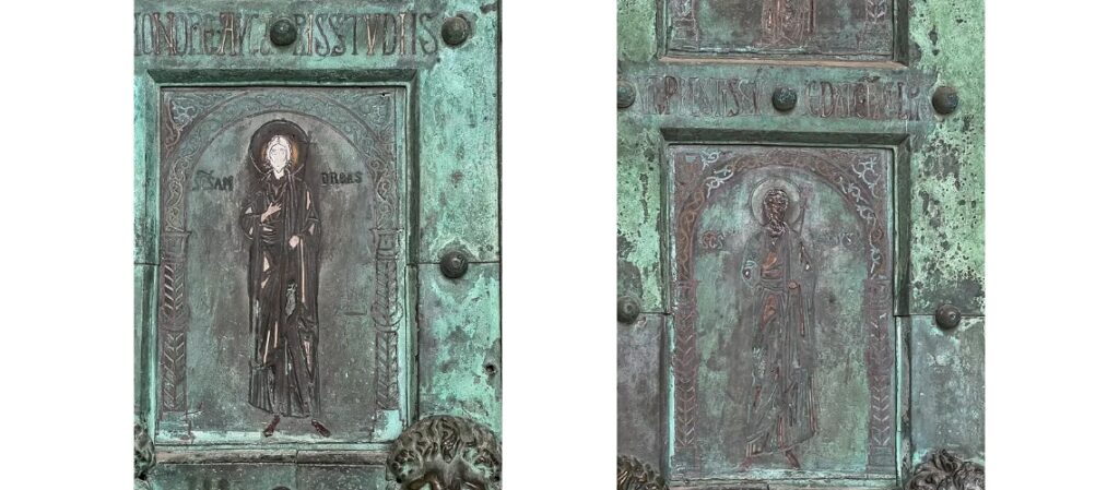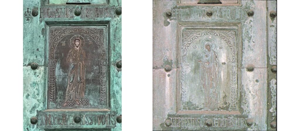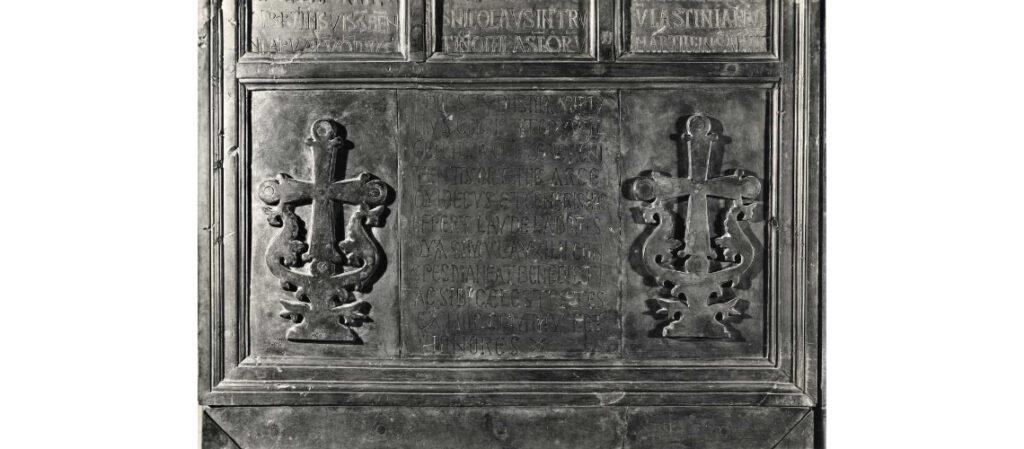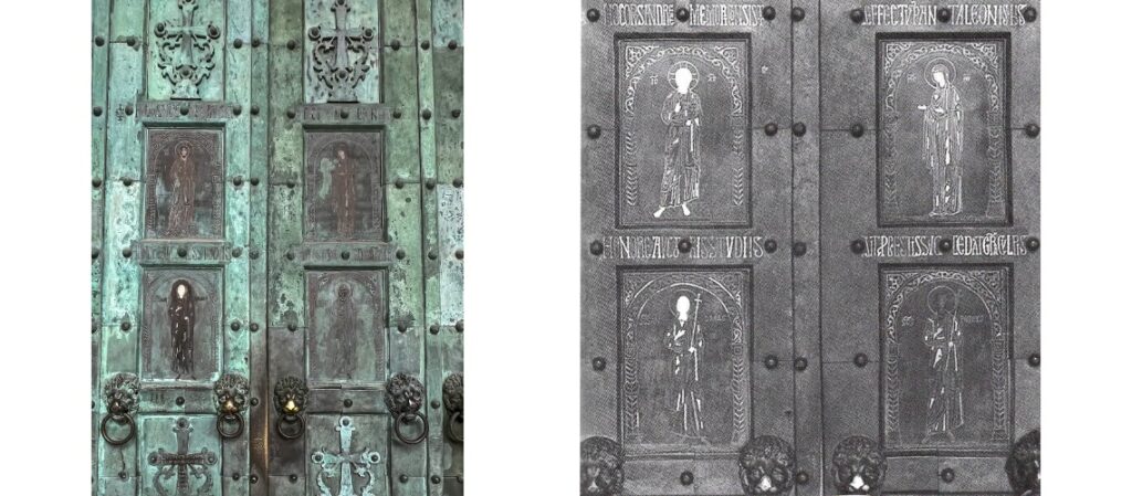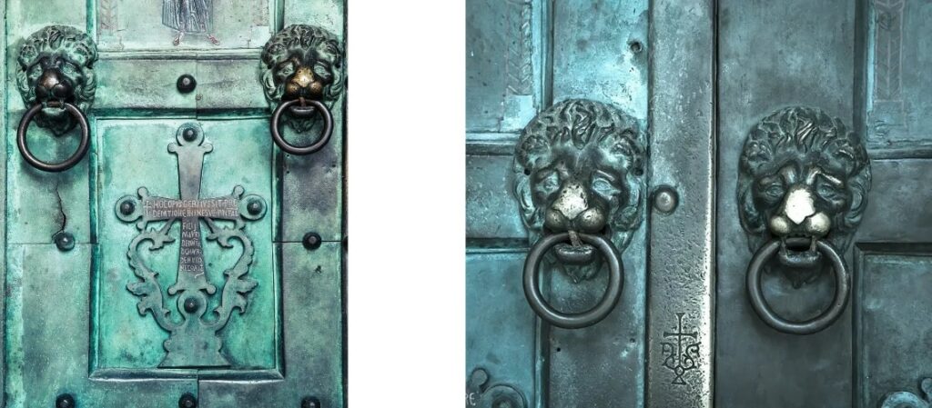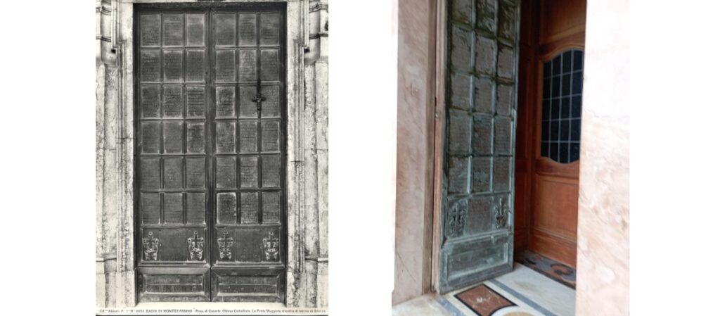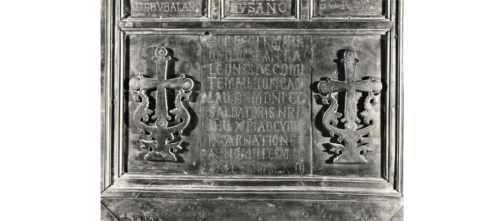 As a sign of gratitude for the liberation of the city from the Germans, Count Chigi Saracini of Siena asked the Sienese sculptor Vico Consorti to create the so-called Gate of Gratitude for the Duomo of Siena. It was cast by the Fonderia Marinelli.