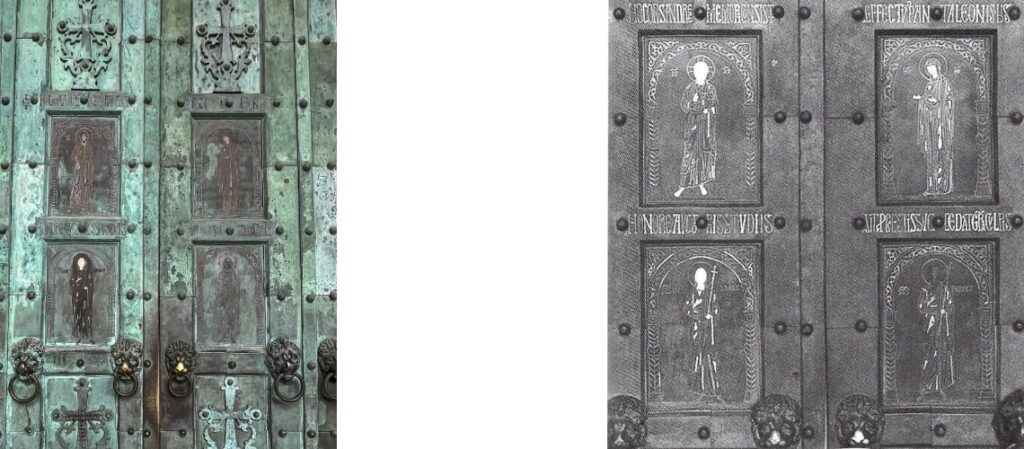 Le porte bizantine non presentano parti in rilievo, ad eccezione delle teste leonine reggi-battente, l’intento è quello di creare una superficie brillante di tipo pittorico e non plastico, come invece sarà quella delle porte medievali create Occidente.